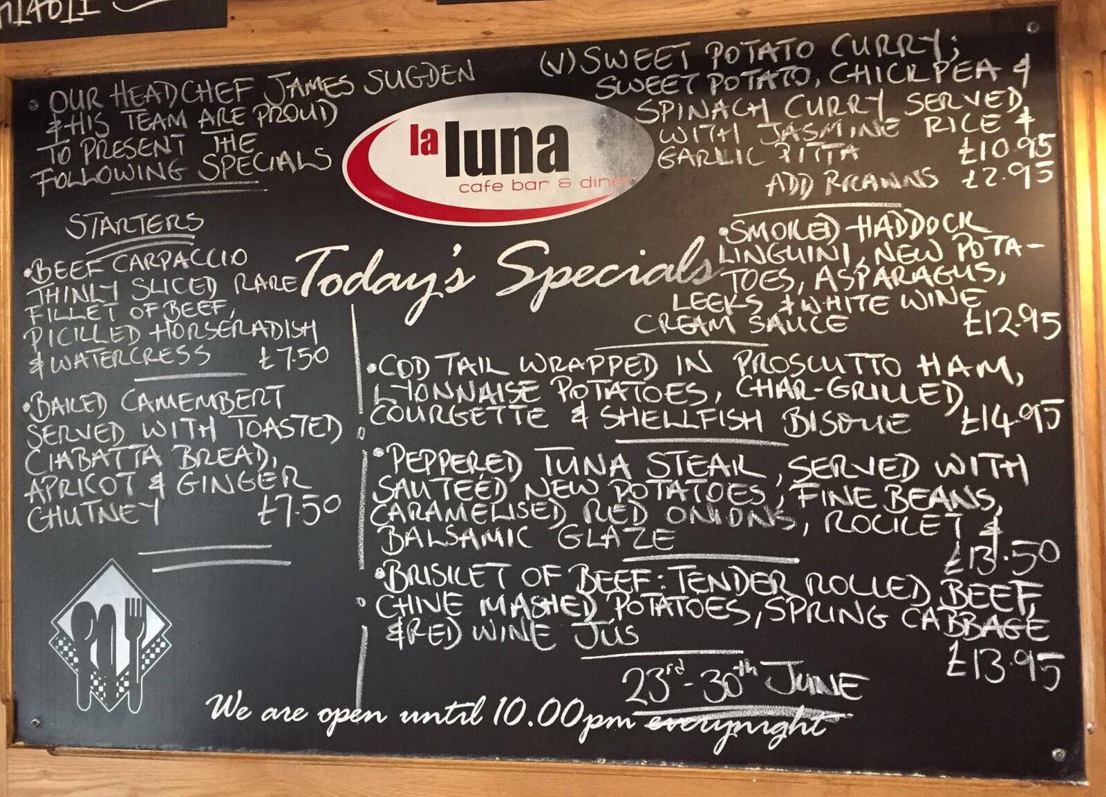 טוויטר La Luna Restaurant בטוויטר Here S Our Specials Board This Week We Hope To See You Soon Laluna Halifax Calderdale Food Https T Co Iuguvyrrfa
